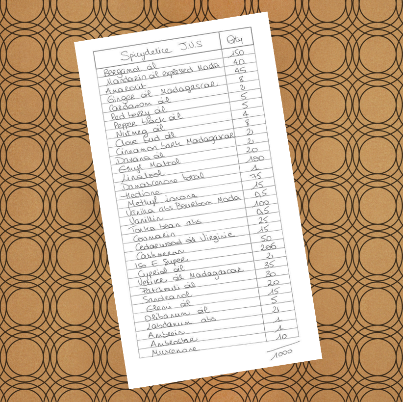 Als opulenter und farbenfroher Wirbelwind ist SPICYDELICE teuflisch unwiderstehlich. Die Kreation eröffnet mit einem reichhaltigen Gewürzbouquet: Kardamom, Ingwer, rosa Beeren, Pfeffer, Muskatnuss, Zimt und Nelken vermischen und verbinden sich miteinander. Die blumige und lakritzige Facette der Davana, die ebenso maskulin wie feminin ist, verleiht diesem spielerischen Tanz einen leuchtenden Glanz. Schließlich mischen sich Vetiver, Patchouli und Sandelholz mit der warmen, sanften Vanille und verleihen einer entschieden sinnlichen und verspielten Kreation Tiefe.