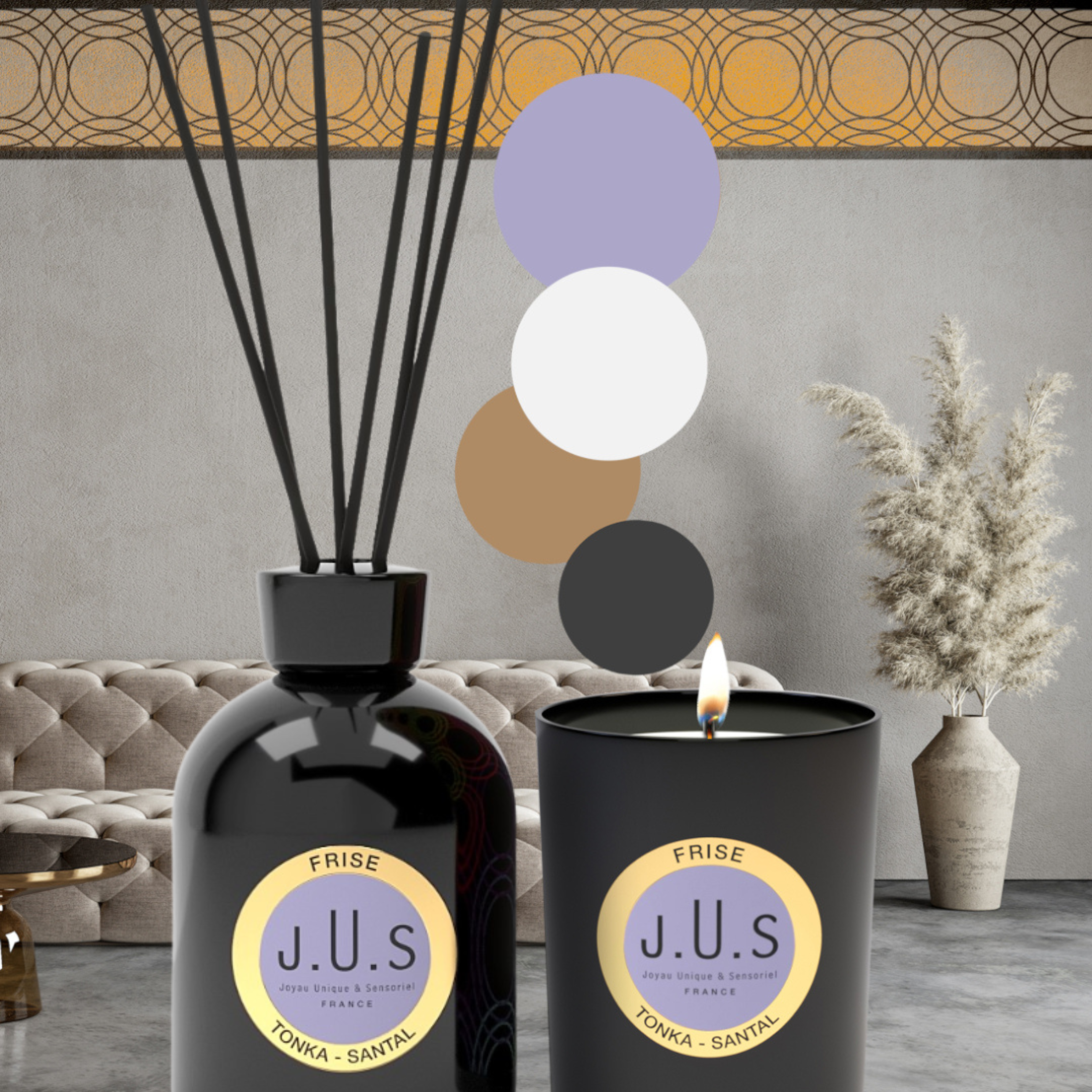 Frise es un lugar de armonía donde los colores se encuentran y los contrastes se despliegan. Las notas blancas de leche caliente y sándalo y las notas negras de haba tonka se funden y se oponen. La armonía olfativa entre estos ingredientes contrastados es perfecta.
