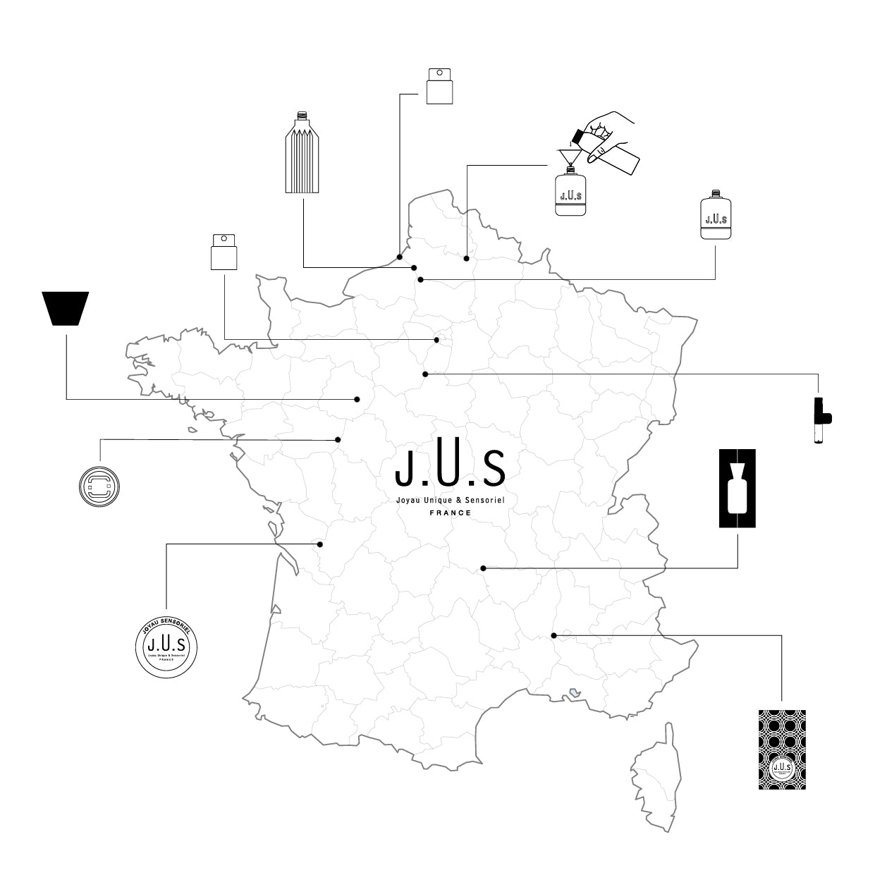 J.U.S offre profumi la cui intera catena di produzione si trova in Francia, dalla formulazione del profumo all'etichetta che ne completa la confezione.